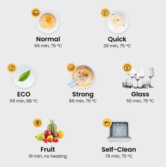Geeignetzum Waschen von leicht schmutzigem Geschirr |