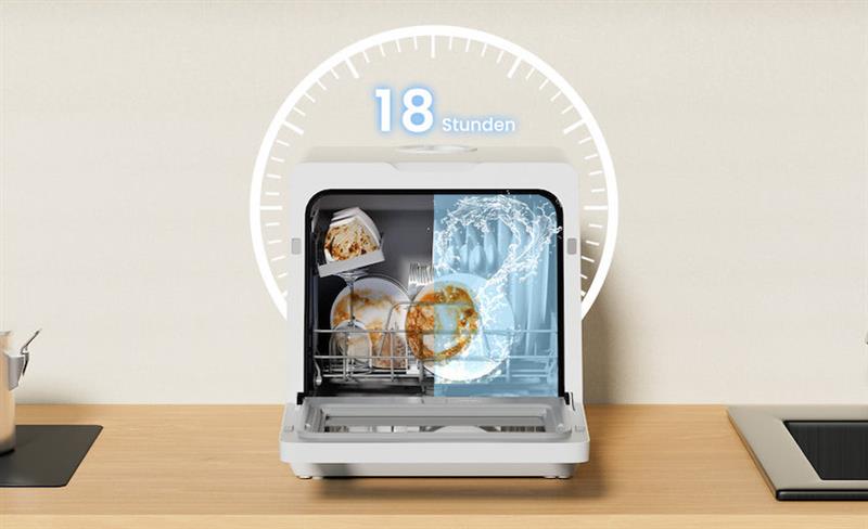 Dieser Geschirrspüler verbraucht nur 0,35 kWh und 5 l Wasser pro Waschgang – bis zu 80 % weniger als das Händewaschen, ideal für einen nachhaltigeren Lebensstil.